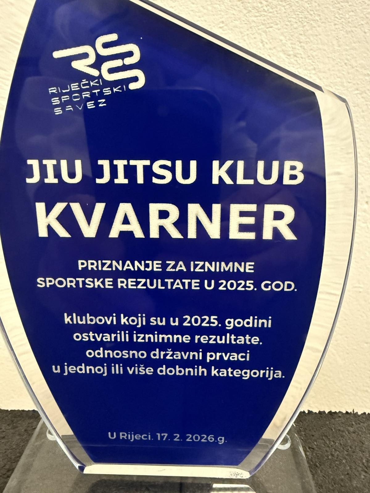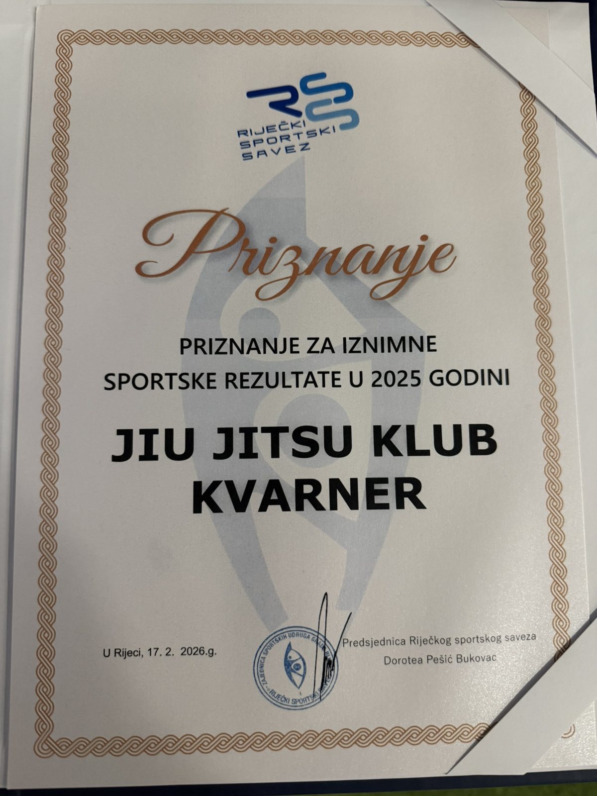 S velikim ponosom i zadovoljstvom objavljujemo da je Jiu Jitsu klub Kvarner dobitnik priznanja Riječkog sportskog saveza za iznimne sportske rezultate ostvarene u 2025. godini.
